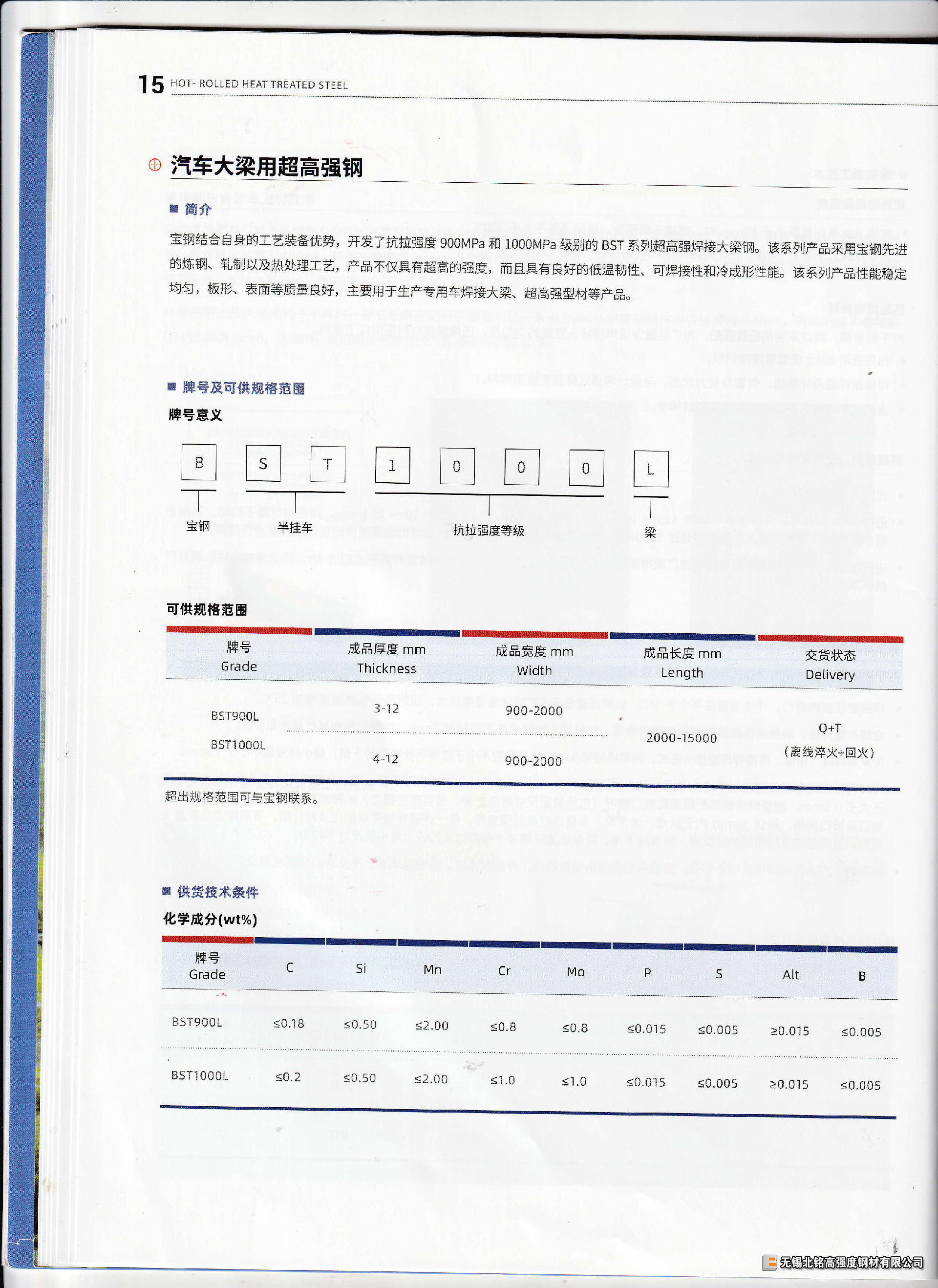 高強(qiáng)度鋼Q550D,Q690D,工程機(jī)械高強(qiáng)鋼BS650MCK2(MCJ4),BS700MCK2(MCJ4),BS700MCK4,BS800D/E,BS900D/E,BS960D/E,BS1000D/E,BS1300D/E, 高猛耐磨板鋼MN13,耐低溫耐磨鋼NM400E,NM450E,NM500E,NM600,BMS1000,BMS1200,BMS1400,BST900L,BST1000L, 超強(qiáng)磁軛鋼Wder800,Wder900 ,WDER1000,WSER1100 。